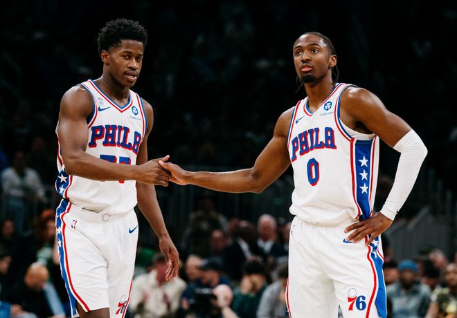 揭幕战和凯尔特人一战,76人1分险胜,马克西41分钟轰下40分6助攻,探花秀埃奇库姆42分钟轰下34分7篮板3助攻1抢断!埃奇库姆首节14分,成功打破NBA历史新秀首秀首节纪录,此前是由詹姆斯保持的12分。有美媒感慨在埃奇库姆身上,看到了韦德的影子,亦或者是新的艾弗森,哪怕他跳投不算稳定,但肉眼可见的绝伦天赋,以及冷静的判断,和对比赛的统治力,都能让76人看到未来冲冠希望。而埃奇库姆和马克西这对组合,揭幕战合砍74分,历史第二,仅次于20年哈登和伍德合砍75分(哈登44分,伍德31分)。