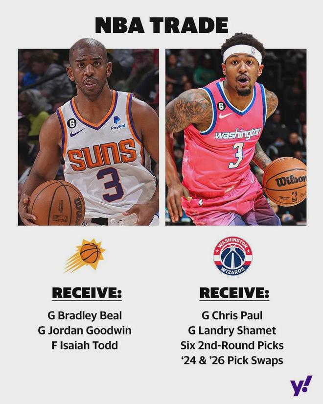 即便比尔现在退役,未来5年的时间,他每年还能拿到将近2000万美元,已经超过联盟多数球员的年薪。奇才当年给比尔5年2.5亿美元,勇气可嘉。太阳用保罗和一堆选秀权换来比尔,更让人“敬佩”。保罗和比尔,如今在快船合体了。