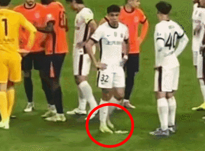 攻方球员倒地后,主裁判王竞毫不犹豫地手指向罚球点,示意颜骏凌绊倒对手,被判点球。接着,多名上港球员表示不服,围着主裁判辩解,此时VAR视频助理裁判开始介入。然而就在VAR确认是否点球期间,奇葩的事情发生了。只见海港后卫李帅若无其事地在原地打转,并没有上去跟裁判讨说法的意思,而且脚底不断地扒拉扒拉着......。